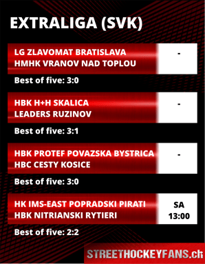 In der Slowakischen Extraliga wurden drei der vier Serien bereits am letzten Wochenende entschieden. Einzig bei der Serie zwischen Poprad und Nitra wird ein fünftes und entscheidendes Spiel am