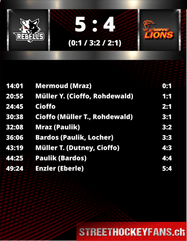 Tim Müller brachte die Rebells in der 44.Minute erneut in Front, doch Mario Paulik konnte das Spiel nur 66 Sekunden später wieder ausgleichen. Als Enzler kurz vor dem letzten Seitenwechsel zum