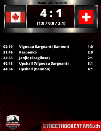 Und so konnte die frühe Führung der Weltmeisterinnen lange konserviert werden. Erst zu Beginn des Schlussdrittels konnte Karpenko das 2:0 erzielen. Im Gegenzug aber gelang Janjic in Überzahl der