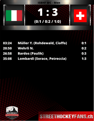 Zwar gelang Lombardi 10 Minuten vor Schluss noch der Treffer zum 1:3, danach aber hatte die Schweiz Spiel und Gegner im Griff und auch Italien hegte kaum noch Ambitionen auf eine