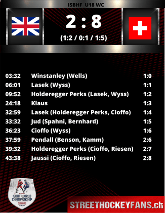 Punkte gutschreiben lassen. Winstanley konnte die Briten in der 4.Minute in Front bringen, bis zur 10-Minuten-Marke gelangen aber Lasek und Holderegger-Perks die Wende zu Gunsten der