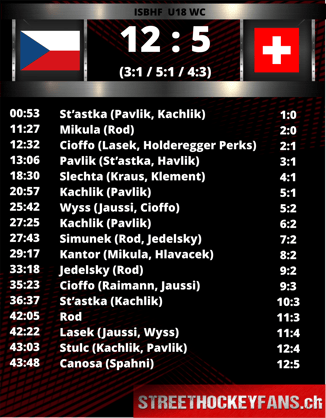 Ein ganz anderes Spiel gab es dann am Abend gegen Tschechien zu sehen. Um das Positive vorweg zu nehmen: Die Schweiz erzielte gegen den Mitfavoriten aus Tschechien nicht weniger als 5 Tore, ein Wert den man nicht alle Tage erreicht. Blöderweise stehen nach 45 gespielten Minuten auf der Gegegenseite satte 12 Gegentreffer zu Buche und so sind dann leider auch die erzielten Tore mehr eine Randnotiz denn ein schöner Erfolg.