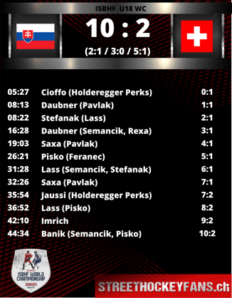 die Schweiz in der 6.Minute in Führung bringen, die Slowakei reagierte aber mit zwei Toren innerhalb von nur 9 Sekunden eindrücklich.
