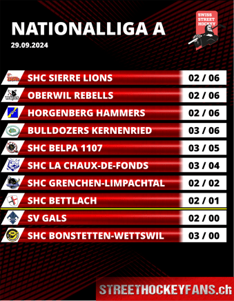 Während die Hammers so auch im zweiten NLA-Spiel die volle Punktzahl einfahren konnten, bezahlt Bonstetten das erwartete Lehrgeld. Nach einer passablen Leistung am Samstag bleiben die Zürcher in Sierre ohne jegliche Chance. Bereits nach 20 Minuten führen die Walliser mit 8:0. Auf dem neuen Plastikbelag spielen sich die Lions in einen Rausch und zeigen mit den nur 8 Feldspieler der Gäste kein erbarmen. Am Schluss feiert Sierre einen 22:1-Sieg, es ist der höchste NLA-Sieg seit dem 32:1 der Rebells gegen Martigny im Februar 2015.