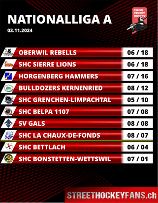 Keinerlei Sorgen um die Playoffs muss man sich aktuell in Kernenried und Horgen machen. Die Hammers gewinnen das Verfolgerduell in Kernenried knapp mit 3:4 und festigen damit ihren 3.Platz in der