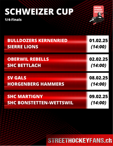 Die zwei weiteren Viertelfinal-Paarungen (Gals-Horgenberg und Martigny-Bonstetten) finden dann erst am übernächsten Wochenende statt.