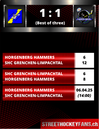 dritte Spiel am Sonntag in Horgen konnte beginnen. Mit drei Treffern meldete sich Grenchen zwar in der Schlussphase nochmals zurück, am Serien-Ausgleich hatte diese Mini-Aufholjagd aber keinen