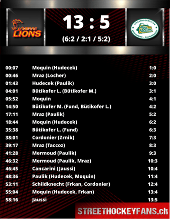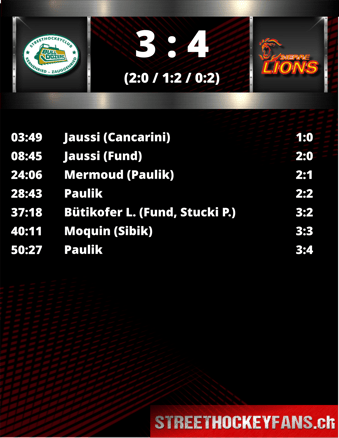 später zum 2:2 ausgleichen. Ausgerechnet jetzt, da das Momentum auf Seiten der Lions zu kippen schien, konnte Kernenried die Kadenz erhöhen und ging durch Loïc Bütikofer erneut in Front.