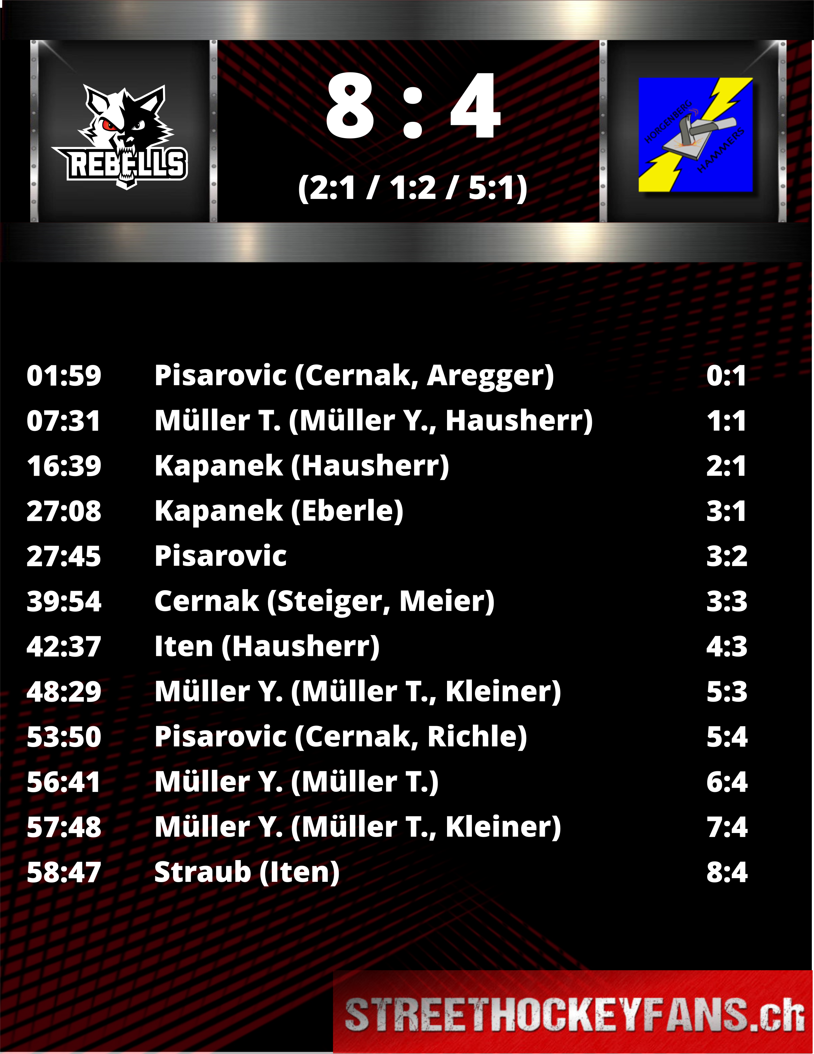 Bereits am Samstag in Zug bissen sich die Hammers immer wieder fest. Zwar konnten die Rebells regelmässig vorlegen, die Hammers fanden aber stets einen Weg die Partie auszugleichen. Erst