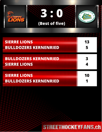 Mit einem "Sweep" gewinnen die Sierre Lions ihren Halbfinal gegen die Bulldozers Kernenried und stehen somit zum vierten Mal in Serie im Playoff-Final. Am Ende setzen sich die Lions zu Hause